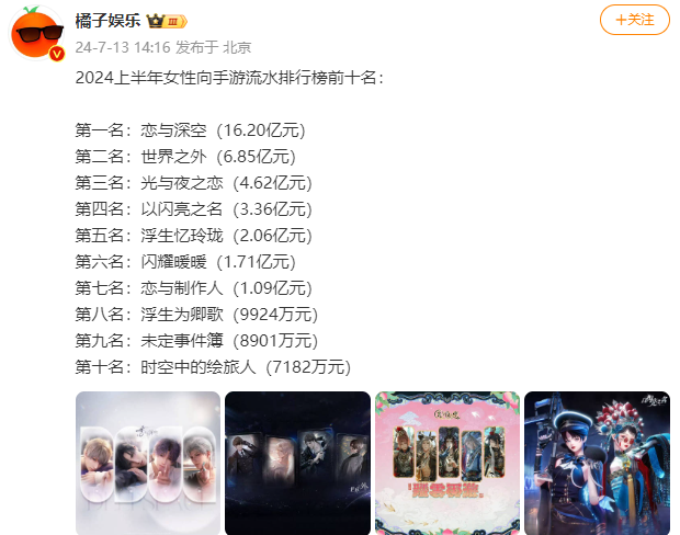 畢竟,中國説唱歌手經濟價值雖然超過1億元,但僅《戀與深空》一款遊戲,單月的收入就超過1億,更不要説其他被無差別掃射的所有乙遊了。