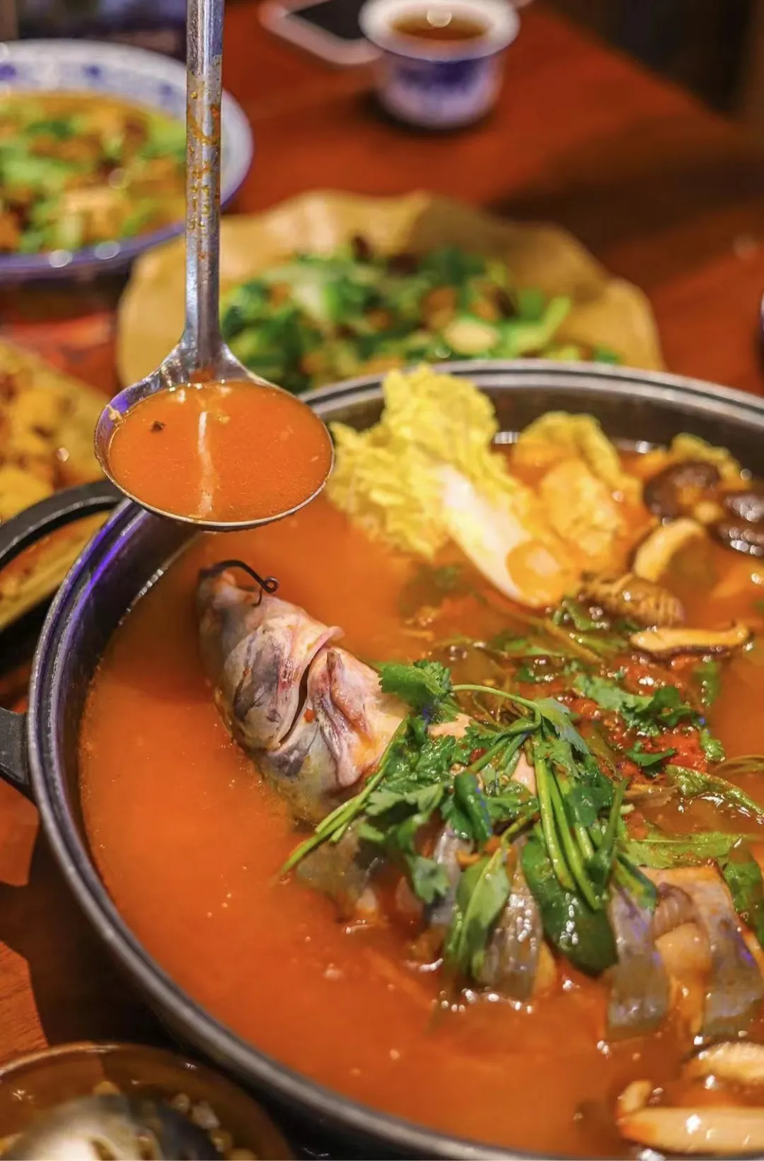 鯉魚、江團、鯰魚等魚類都是凱里酸湯魚鍋中的常客,酸湯本身有提鮮解膩的作用,所以肉質鮮嫩肥美的魚與酸湯更搭。