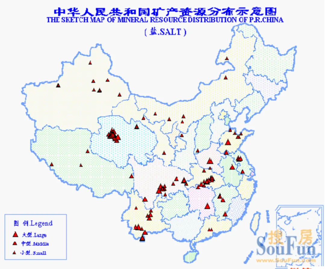 而內陸省份,諸如四川、青海、甘肅、山西,則擁有包括井鹽、礦鹽、湖鹽在內的各種鹽資源。