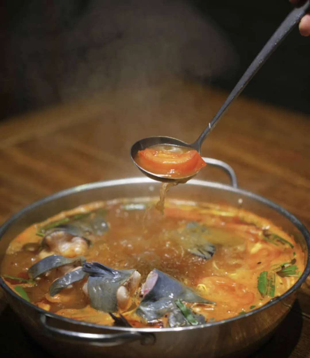 等酸味過了,湯裏的香料才回過神,香茅草、木姜子、芫荽、辣椒等等香料的複合香味彷彿天邊的雲朵翻滾而來,密密匝匝地給口裏留下綿長餘味。