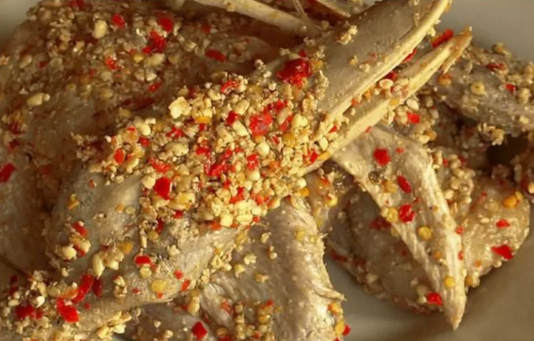 最具代表性的,還要屬遵義的糟辣椒。它是貴州人廚房裏不可或缺的味道。每年六七月,朝天椒、野青椒上市的季節,家家户户拿出罈子,幾十斤辣椒一個個清洗去蒂,再用砍刀把辣椒宰碎。一定要剁成帶有粘性的、類似“茸”樣的狀態,這才可以根據自家的秘方加入姜和殺菌的鹽、酒等封壇,全程不能沾染一丁點油腥,剩下的就交給時間。