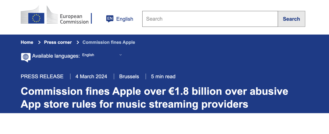 除了微信、抖音這些國內應用,國外Spotify和Epic Games都和蘋果產生了爭端;而歐盟、荷蘭、韓國都曾針對蘋果公司直接處罰,今年5月中國首例由消費者針對“蘋果税”發起的反壟斷訴訟,雖然消費者敗訴,但法院認定了“蘋果具有市場支配地位”。