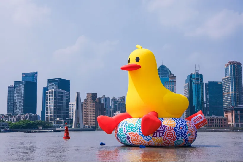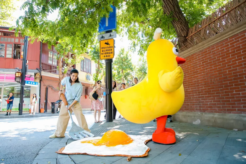 黃浦江上驚現20米高的巨型裝置“鴨馬路”,8 條各具特色的“小馬路”可以逛吃,街角有不期而遇的音樂會,持續三天的“落日音樂會”……生活節還設計了各種集章打卡兑換禮物活動,鴨馬路大聲公、鴨鴨防蚊包、嘎嘎樂大禮包,全是看了走不動的玩意,滿足年輕人的收集癖。