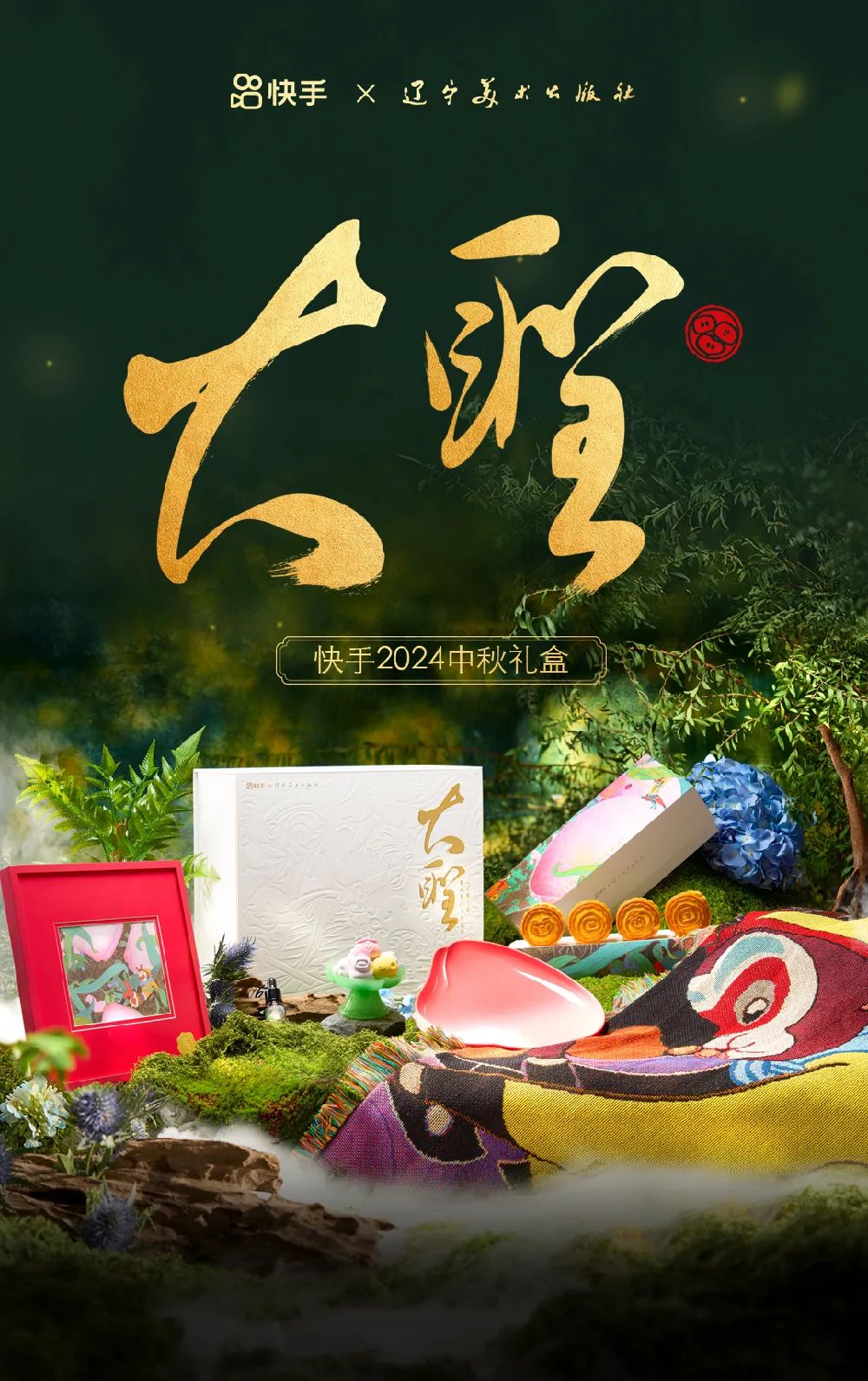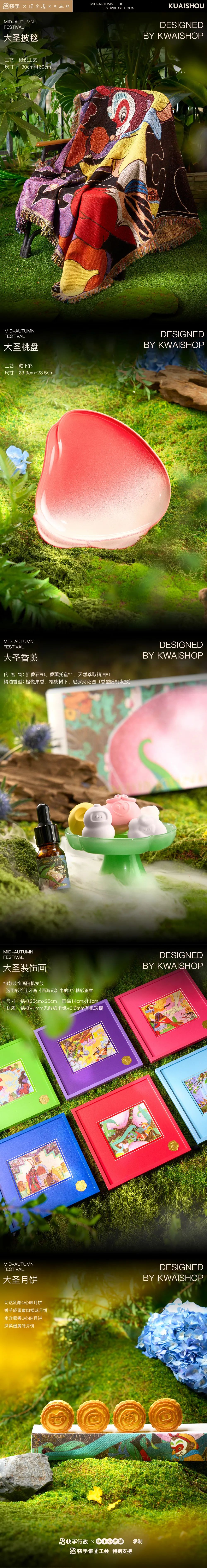快手這次是“大聖”主題禮盒,將經典連環畫《西遊記》的元素加入其中,製作了大聖月餅、大聖披毯、大聖桃盤、大聖裝幀畫。