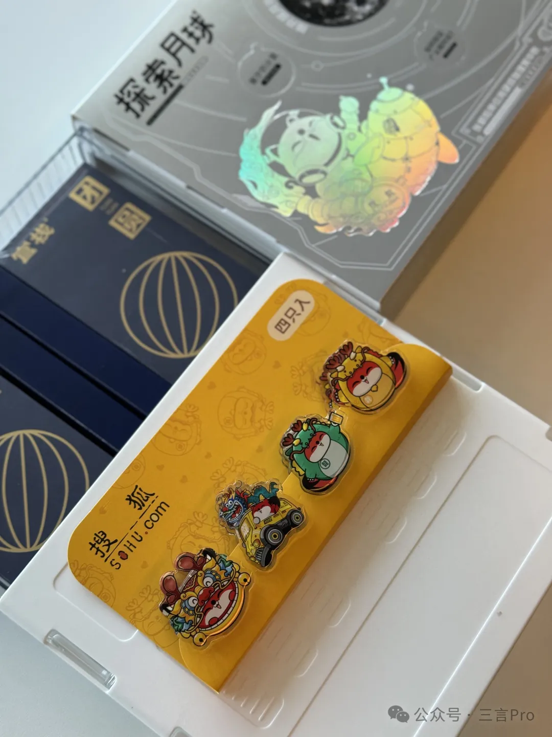 禮盒包含月餅、桌下收納抽屜盒(月餅包裝盒)和搜狐專屬小狐狸周邊PP夾。