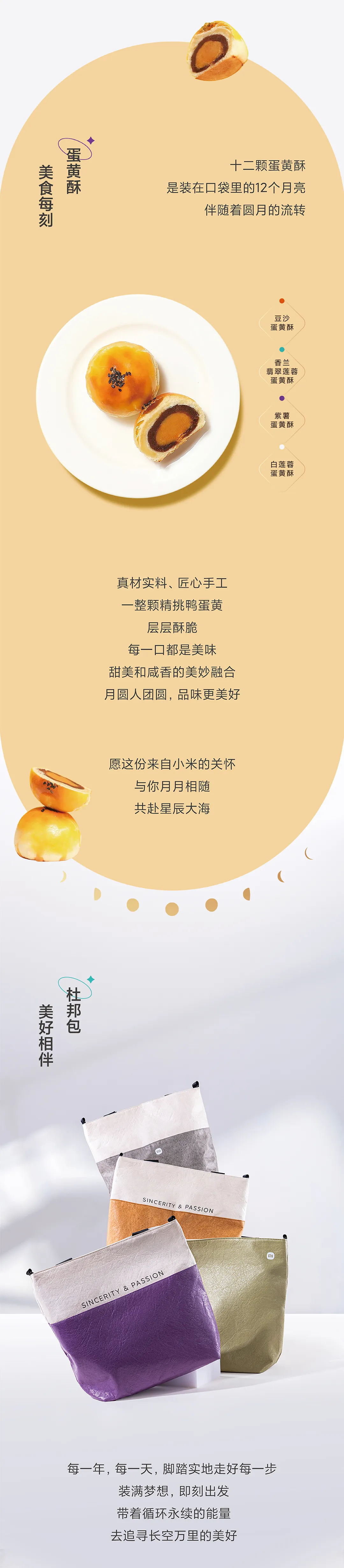 小米禮盒包含:12個蛋黃酥,寓意一年12個月的陪伴;一個杜邦包還有書籤,看來還不錯。