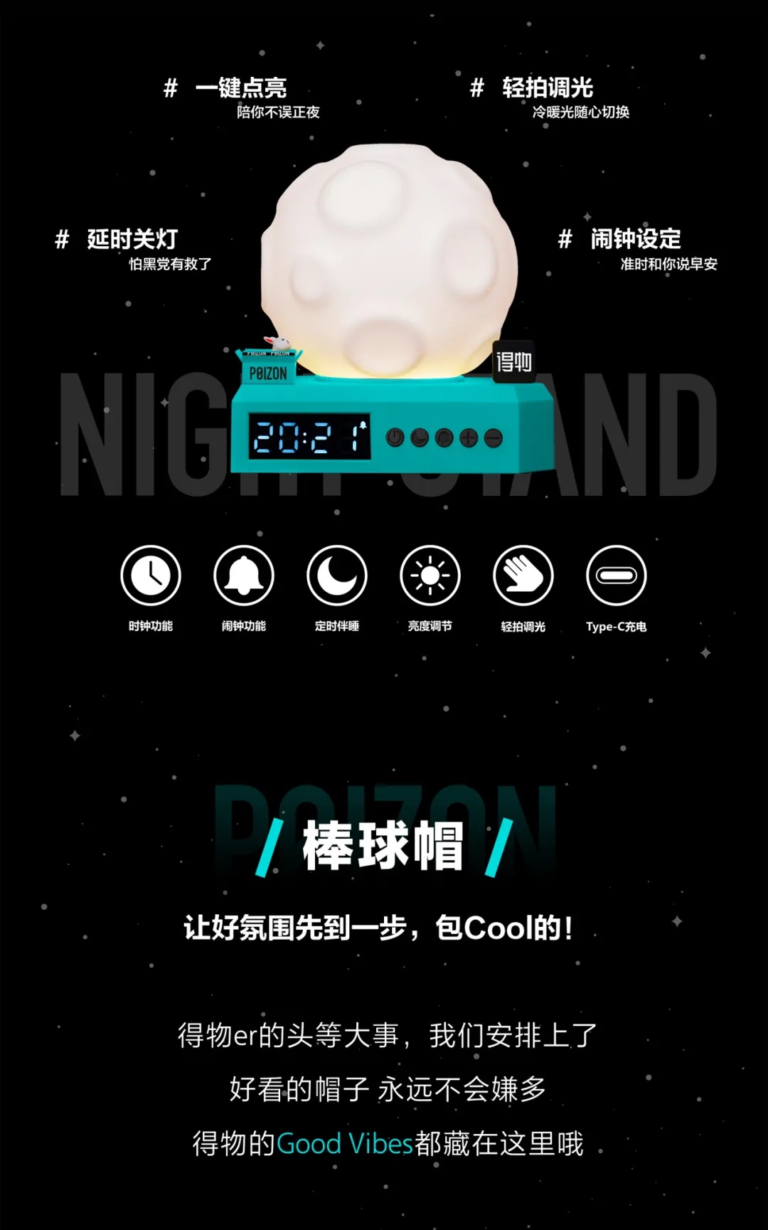 得物禮盒也出現了小夜燈,看來大家都喜歡這種東西。得物禮盒有三樣:夜燈、帽子、月餅,夜燈有一定的可玩性,還能當鬧鐘使。