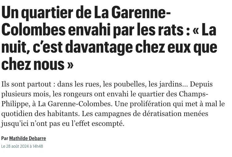 上週咱們巴黎近郊92省La Garenne-Colombes就遭受了嚴重的老鼠入侵,因太過嚴重上新聞了😂