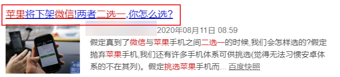結果在個別媒體報道中,這個疑問句直接成了陳述句,問大家蘋果和微信二選一怎麼選。