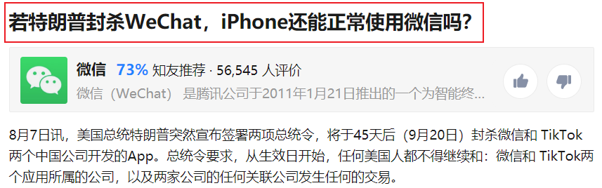 那會川普還是美國總統,他突然頒發了一個非常模糊的行政令,可能、疑似、大概、也許要封殺 Wechat 。
