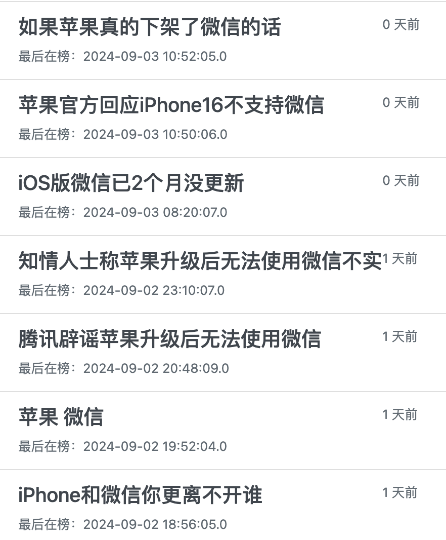 這兩天 “ 微信蘋果 ” 相關話題直接成了賽博村裏的頭條,貼在各大平台的首頁。