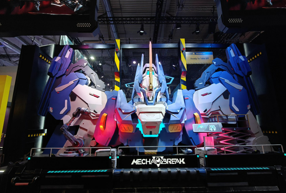 和《三角洲行動》在同一展廳的科幻機甲遊戲《解限機》的展台也非常搶眼,巨大的機甲吸引了很多路人的目光,展會期間西山居還舉辦了一場6V6戰場模式的表演賽。