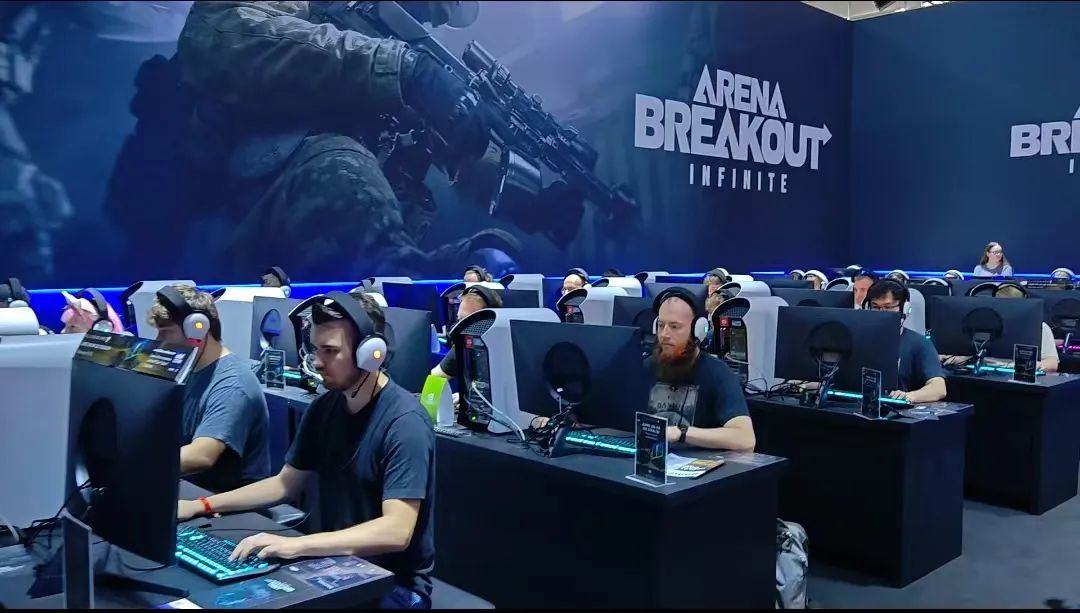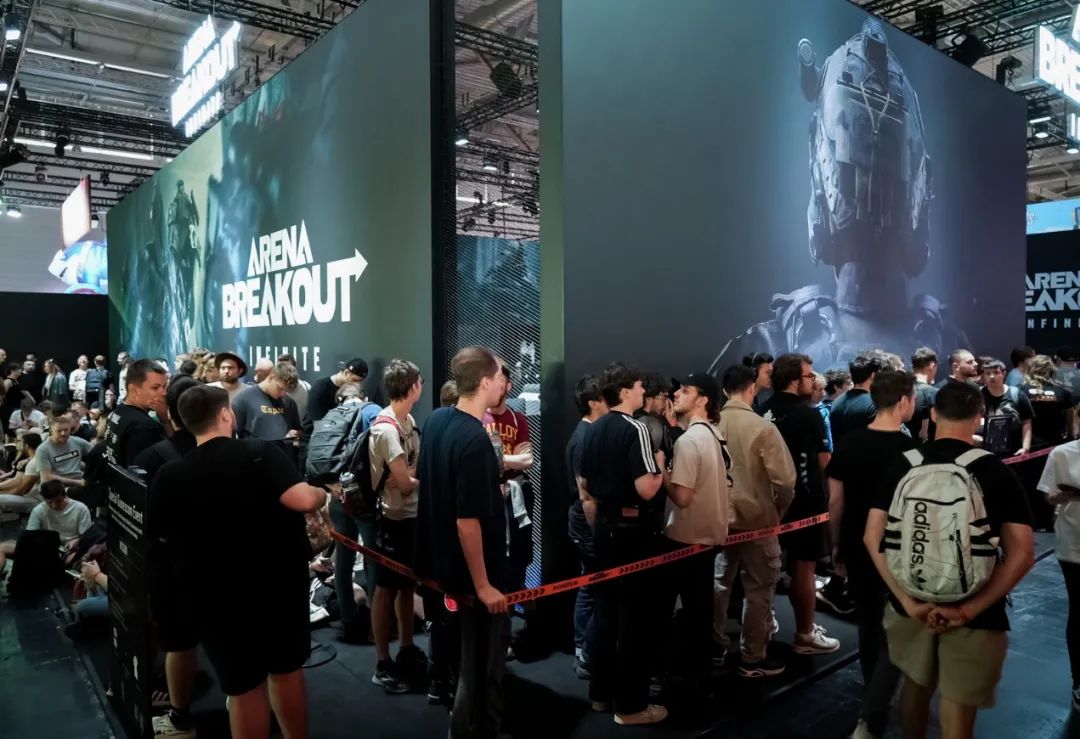 在Level Infinite展台不遠處是騰訊魔方工作室的《暗區突圍:無限》海外版(Arena Breakout: Infinite)展台,這款遊戲此前在海外已獲得了很大的關注,因此有大量的玩家排隊體驗。