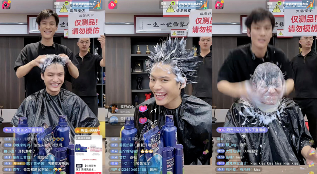 賣拖鞋,小楊哥直接把拖鞋塞進嘴裏咬,呲起牙甩來甩去,網友評論“別把牙崩了”,他直到真咬下來一大塊塑膠才肯罷手。