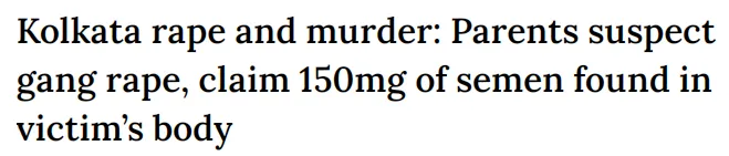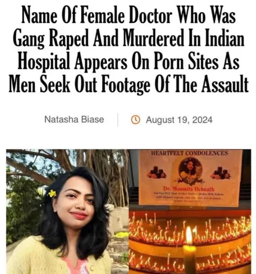 8月9日,印度加爾各答的女醫生夜班期間在醫院遭到輪姦和虐待致死。
