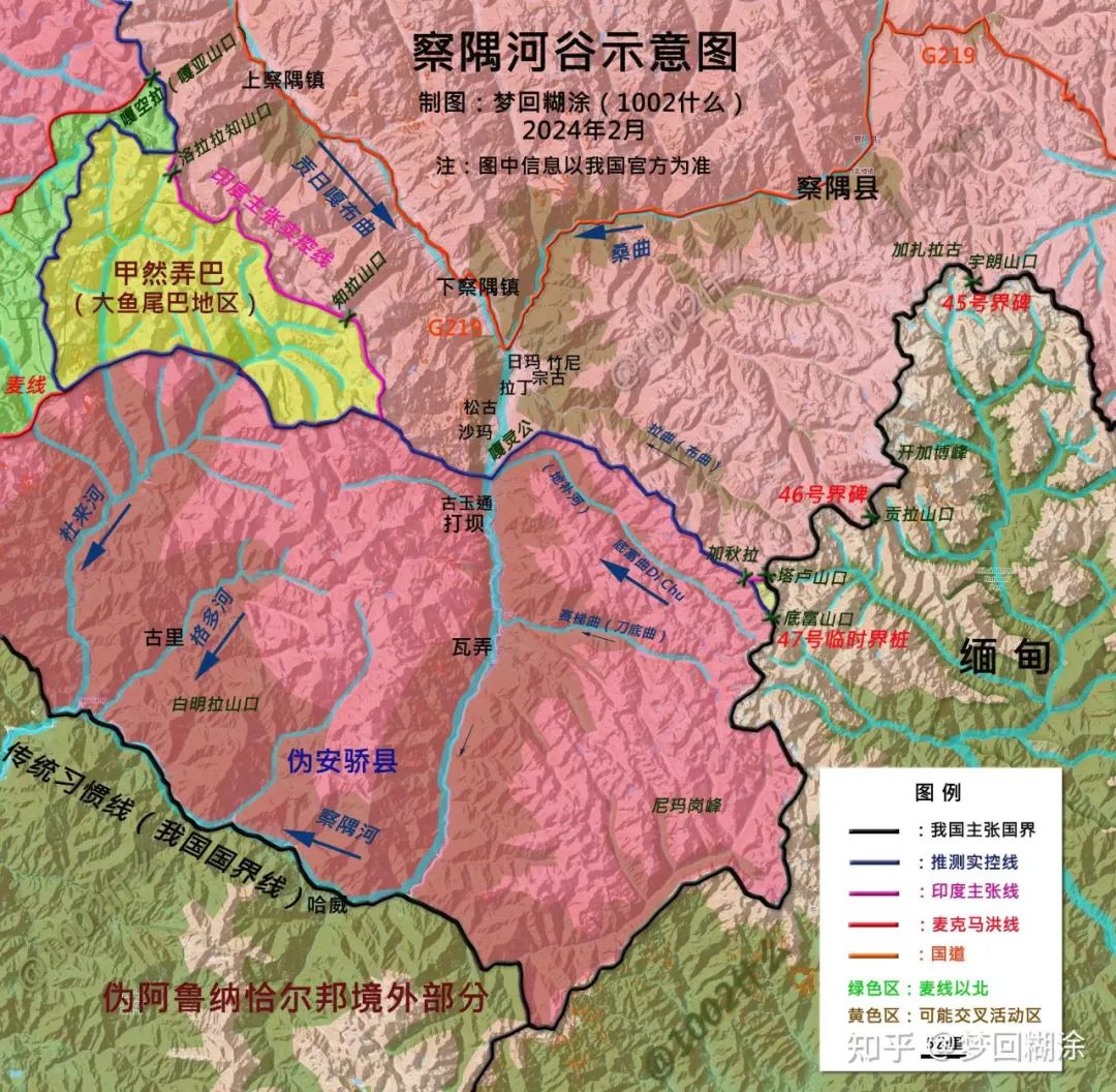 **察隅地區是中國的固有領土。****在清代初期,**清政府招撫桑昂曲宗等地,將其劃歸昌都呼圖克圖,雍正年間賞給大和shang。西藏地方政府在桑昂曲宗設立營官,在察隅等地設立協敖進行管轄。察隅河自北向南穿過察隅地區,繼而折向西偏北方向,最後南流進入印度阿薩姆地區,被稱為魯希特河(Lohit),察隅地區也成為阿薩姆通往中國西藏、四川等長江中上游地區的便捷通道。僜人是察隅地區的主要居民之一,分為達讓和格曼兩個分支。達讓主要分佈在察隅河的下游支流杜來河流域和察隅河上游的西部源頭貢日嘎布曲流域;格曼主要分佈在杜來河東部的察隅河下游地區。近代英國將中國的僜人、丹巴河流域的部分珞巴族和察隅河南部的山地部族等統稱為米什米人(Mishmi),米什米人中的西部分支迪加羅人(Digaro/Tain)大致對應為達讓人,東部分支米久人(Mezho/Miju)大致對應為格曼人。在近百年的時間中,英國即圍繞着這一地區的山地部族進行了多次殖民話語建構,不斷將邊界線向中方一側推移。