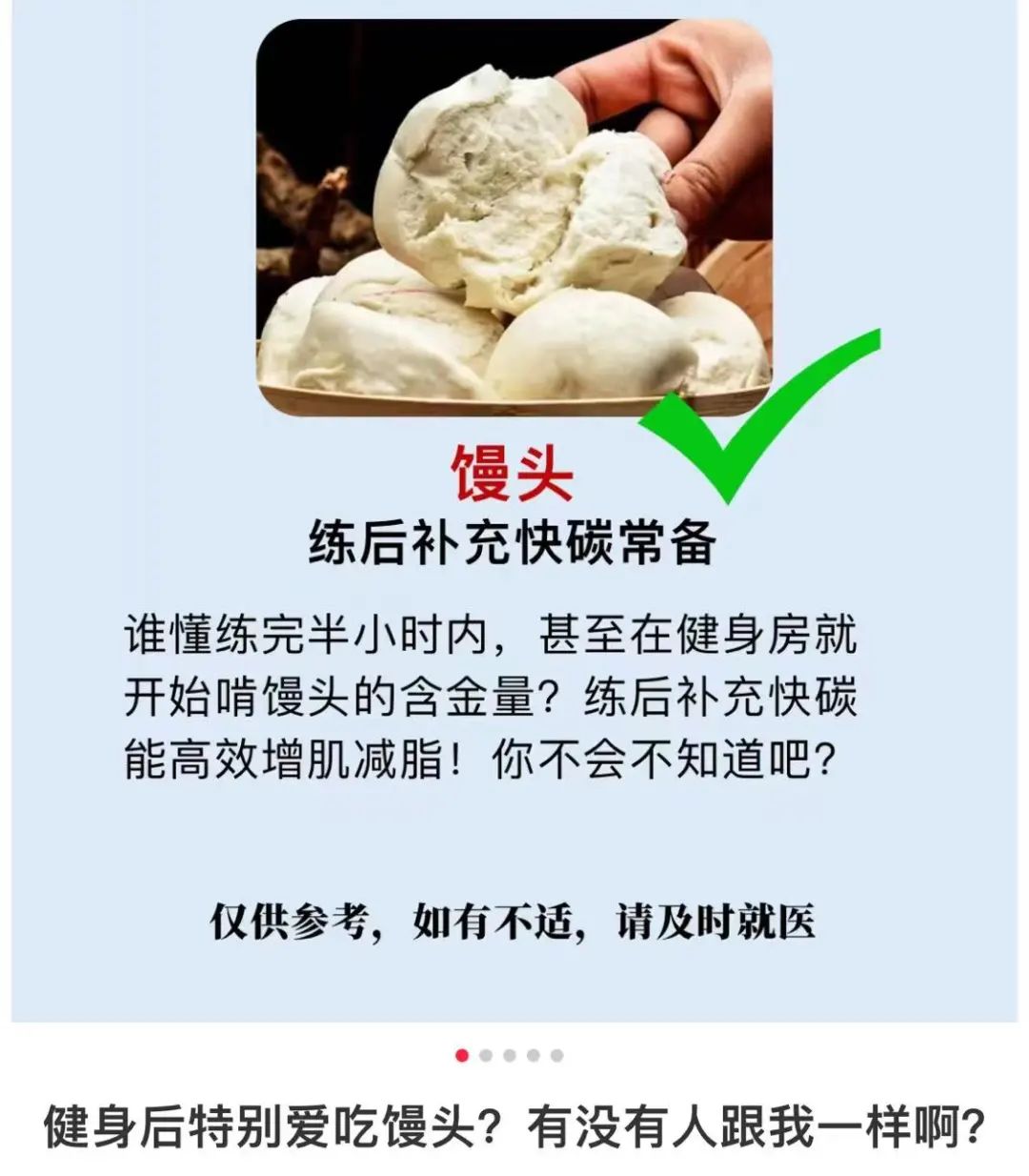 ▲圖:小紅書上關於練後餐吃饅頭的帖子比比皆是
