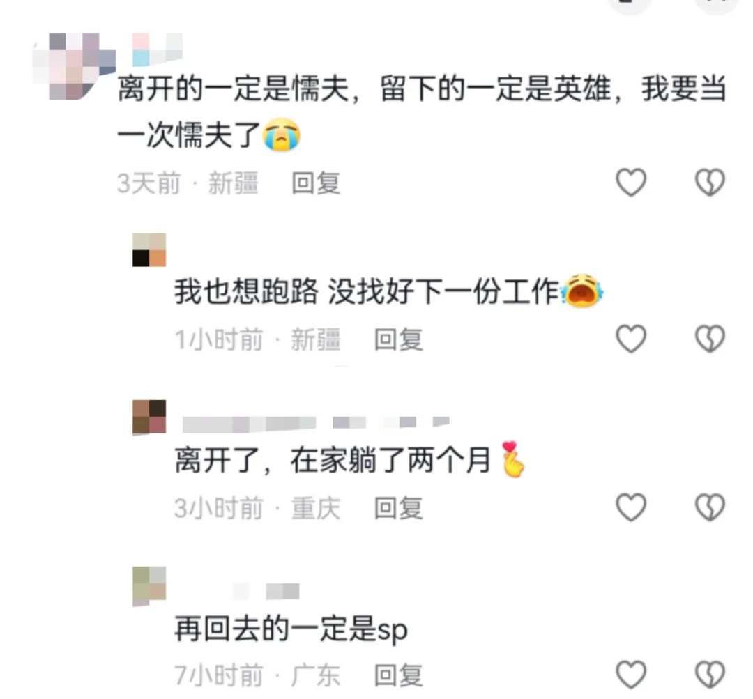 還有人則表示:在土木工程行業,離開的一定是懦夫,留下的一定是英雄,但是不好意思,我要當一次懦夫了。