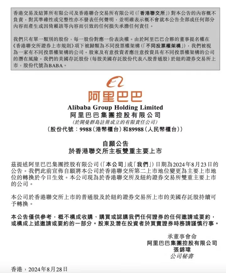 這裏需要明確的是,阿里早已在香港完成二次上市,而本次再回港是形成美國、香港雙重主要上市的格局。