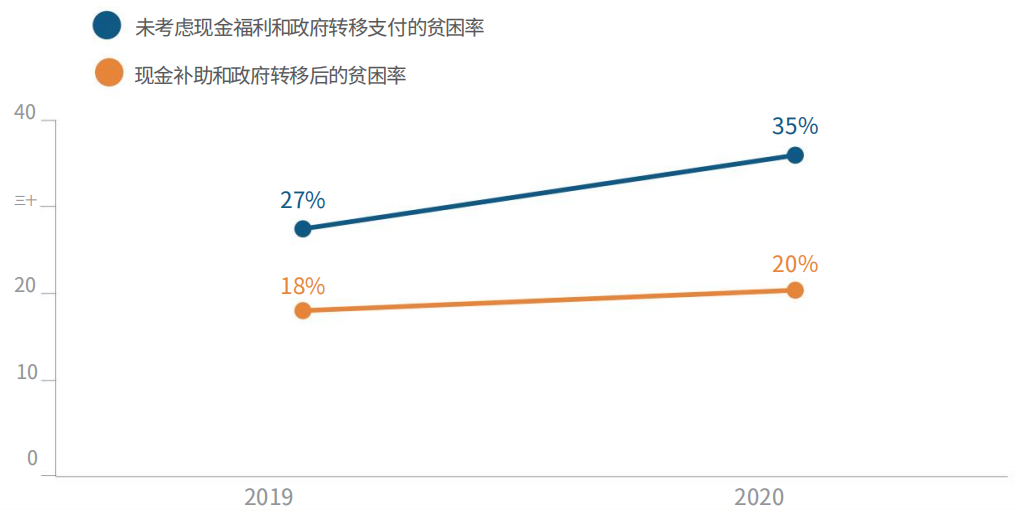 一份聚焦美國“疫情期間直接現金補助”分析報告指出,單單紐約市,2020年通過刺激支票和UIB計劃(失業保險福利),將貧困率從35%降到20%。
