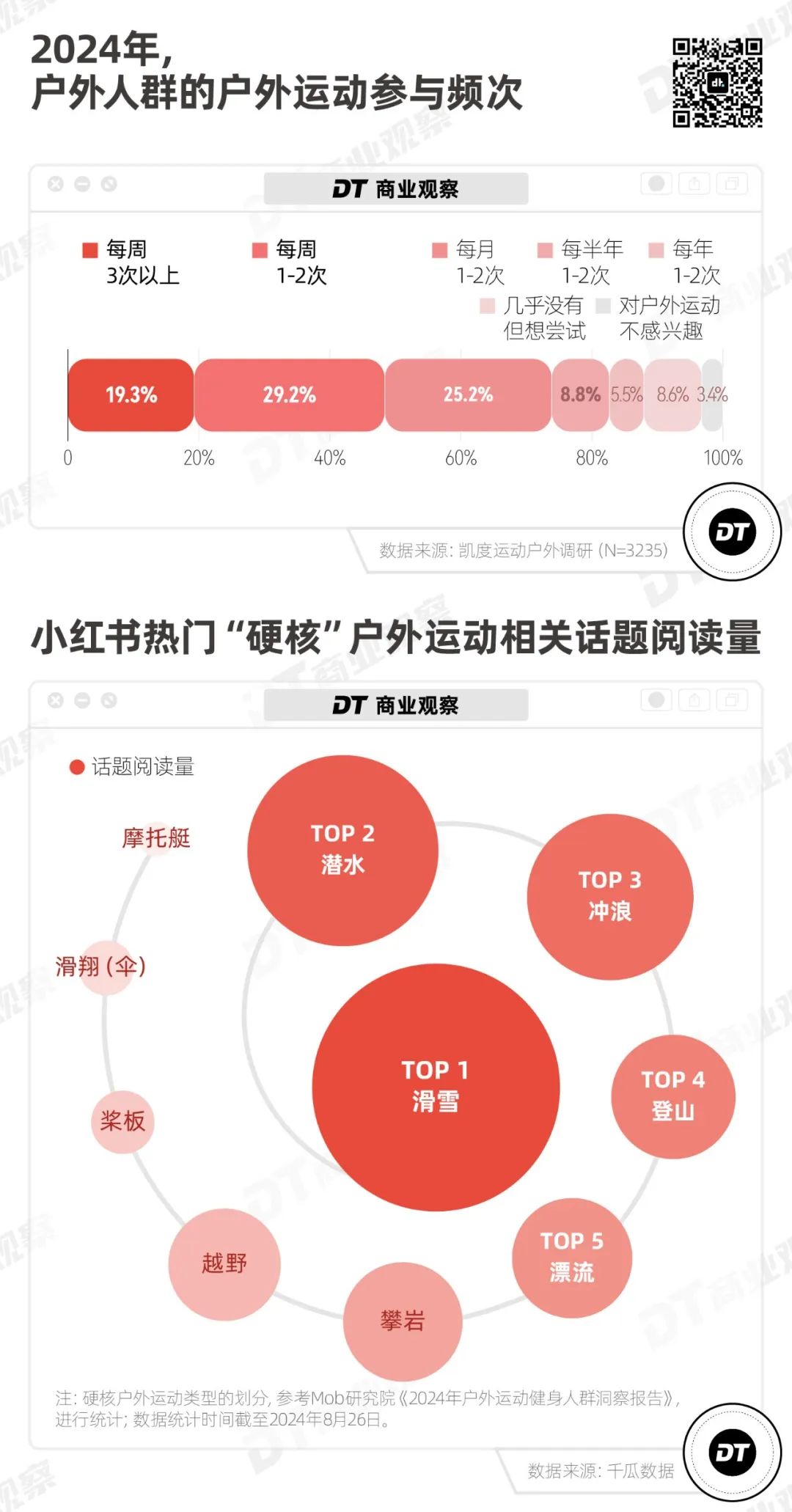 除了運動頻次變高,大家在户外運動項目的選擇上,開始從輕量級走向硬核風。