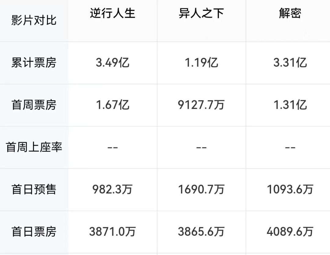 《異人之下》《解密》雖然在類型創新方面值得業內認可,但二者最終的失敗來源於大眾對這兩部影片的“陌生”感,而《逆行人生》則與市場主流情緒違和而造成。