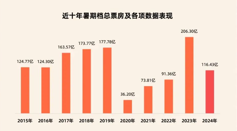 有消費大環境的整體原因影響,也有一眾備受矚目的電影在暑期檔連續失靈的要素,共同造成了2024年暑期檔跌到十年前的境況。