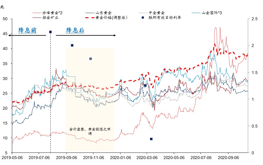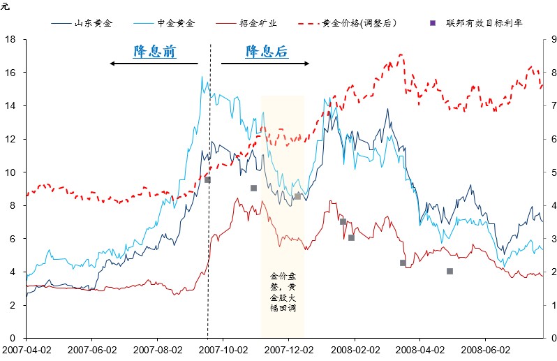 參考主流黃金公司上市時間及切入黃金業務的時間,2007、2019年兩次降息後股價走勢值得參考。