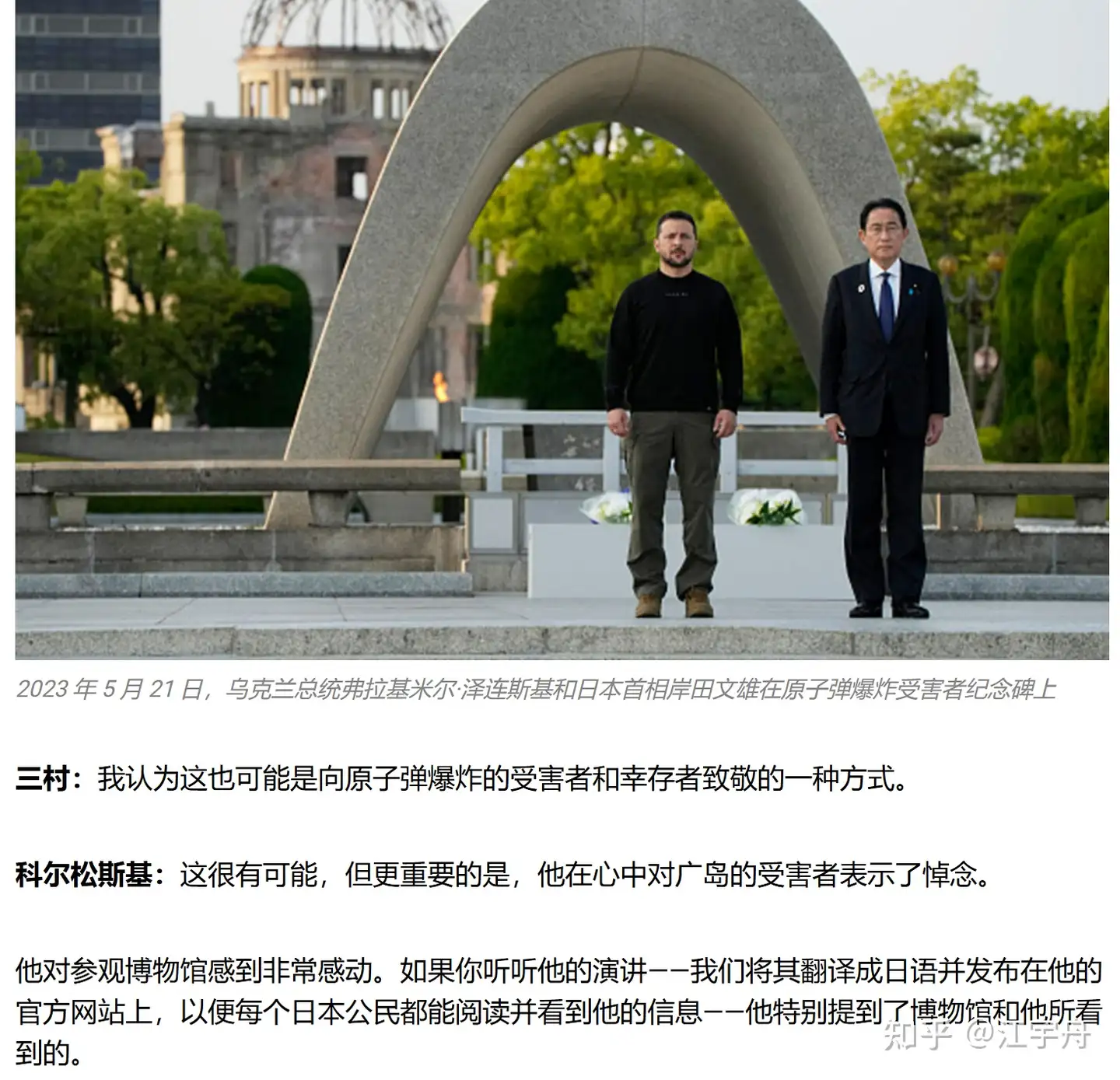 這個大使還促成了2023年5月澤連斯基訪問廣島,當時他在接受NHK採訪時,完全站在了日本對廣島原子彈爆炸的立場上,單純表達反戰與對核爆波及者的所謂同情和感動[[4]](https://www.zhihu.com/question/666158162/answer/3616121739),但卻一點也不涉及這場戰爭是如何發生的,亞洲各國比這悲慘得多的廣大受害者又是什麼樣的。
