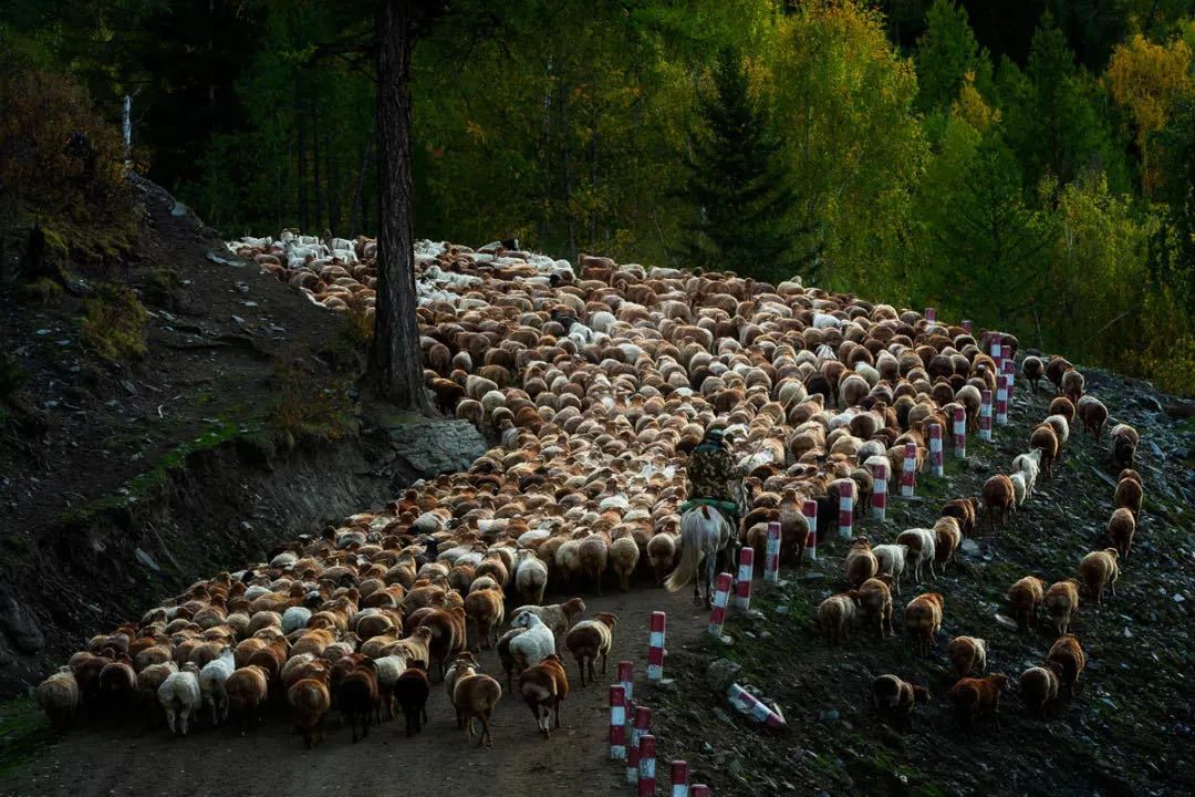在阿勒泰福海縣的薩爾布拉克山谷,每年九月都會上演一場從夏牧場轉至秋季牧場、浩浩蕩蕩、波瀾壯闊的轉場情節。