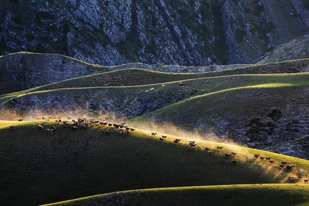 牧道或在谷底,或在山丘,所到之處,煙塵瀰漫,牲畜嘶鳴,氣勢恢宏。這陣勢瞬間讓人熱血沸騰,激動不已。