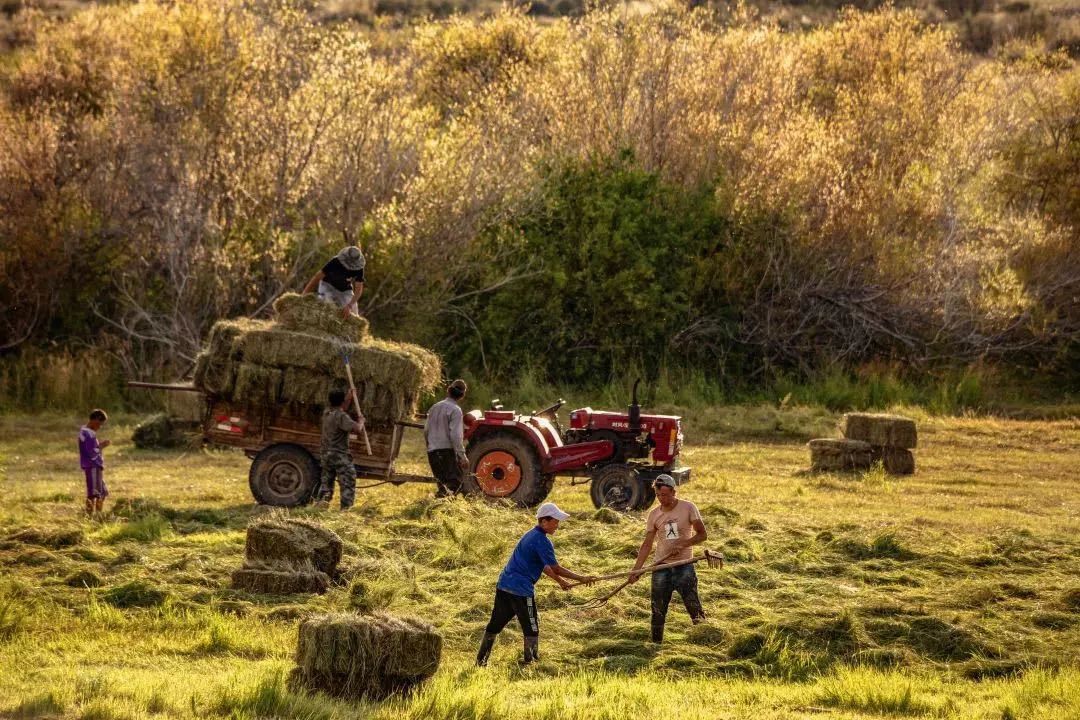 那拉提草原的高山草甸,讓打草工作變得翻山越嶺起來。九月,正是牧民打草的好時節。