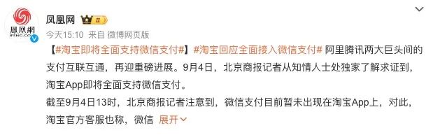 於是今年春節一過,就有用户發現淘寶在灰度測試微信支付,這玩意幾乎就明示了唄,成不成都是醜媳婦見公婆——早晚的事。