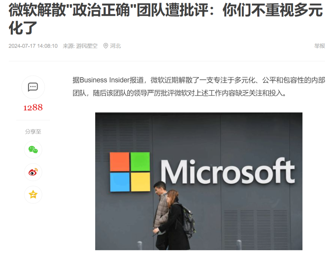 上個月微軟解散公司內部專門的多元化團隊,還被某些人噴了一波。