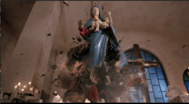 象徵着信仰的聖母塑像被打破時,也意味着,這些英雄們即將要面臨註定的悲劇,與蠻荒的時代。