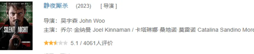比如説,去年他的那部《靜夜廝殺》,他也會在其中嘗試新鮮的拍攝方法,全片沒有台詞,只靠動作説話。
