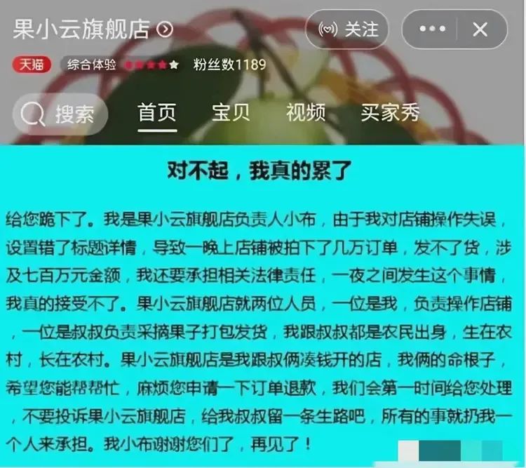 為了彌補鉅額的損失,商家在首頁發佈了致歉視頻。
