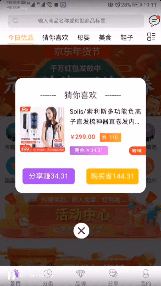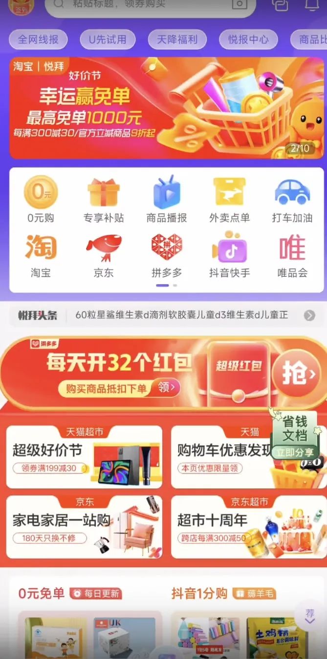 用户不僅可以通過悦拜APP領取優惠券省錢購物,還可以通過分享商品賺取佣金,實現購物省錢與賺錢並存。