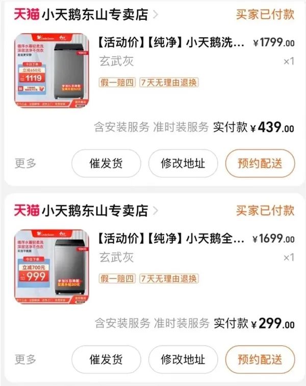 比如,寶媽小陳就退回了她在該店鋪搶到的洗衣機。