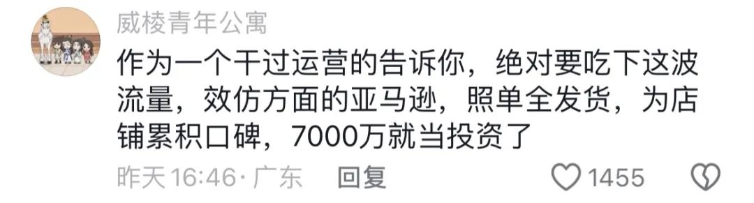 還有人建議,商家一定要接住這波流量,照單全發貨,3000萬就算交廣告費了。