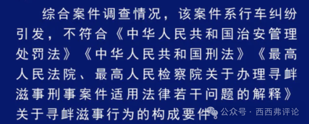 行車糾紛是偶發矛盾糾紛,藉故生非是可以認定尋釁滋事的。青島公安局的聲明中説因為是行車糾紛,所以不屬於尋釁滋事。這一點是不正確的。
