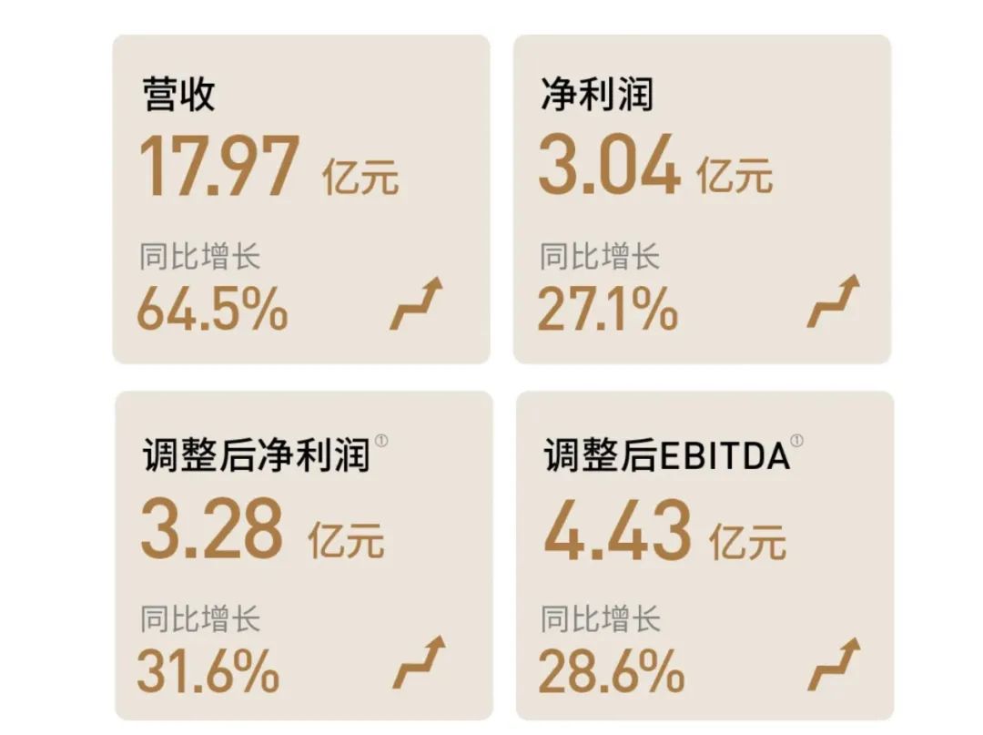 2024年第二季度,亞朵酒店實現營收17.97億元,調整後淨利潤約3.28億元。這兩項數字同比分別增長了64.5%和31.6%,與一季度相比,也環比分別增長了22.4%和16.5%。
