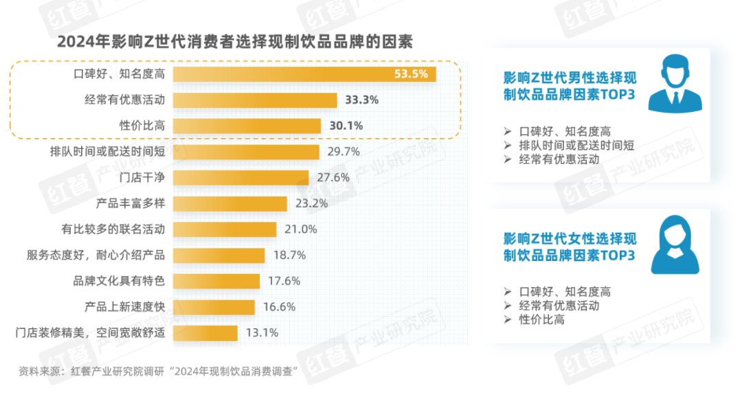 此外,在現制飲品消費決策過程中,Z世代消費者尤為重視品牌的口碑、知名度、促銷活動及性價比。