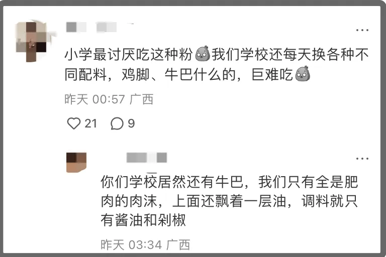 但不知為何,這碗肉末湯粉似乎從未走出過廣西的中小學校園,又因為學生時代沒有手機,這份肉末湯粉也鮮少被記錄和傳播。