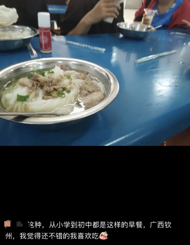 因為做法簡單,出餐極快,它幾乎制霸了全廣西中小學校園的食堂,成為八桂學子們必不可少的早餐粉。