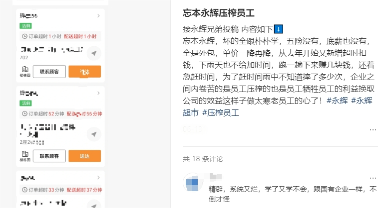 以前的永輝不是這樣子的,一位自稱永輝10年老員工的網友表示:
