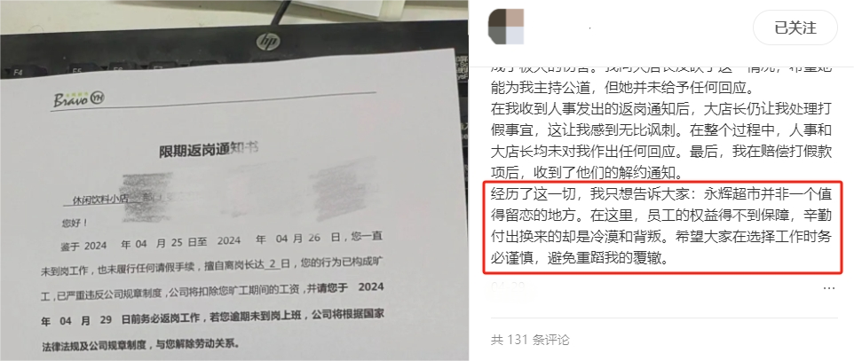 前段時間,“永輝超市離職店長”小李,在小紅書上分享了在永輝的從業經歷,意外收穫了很多共鳴。他説: