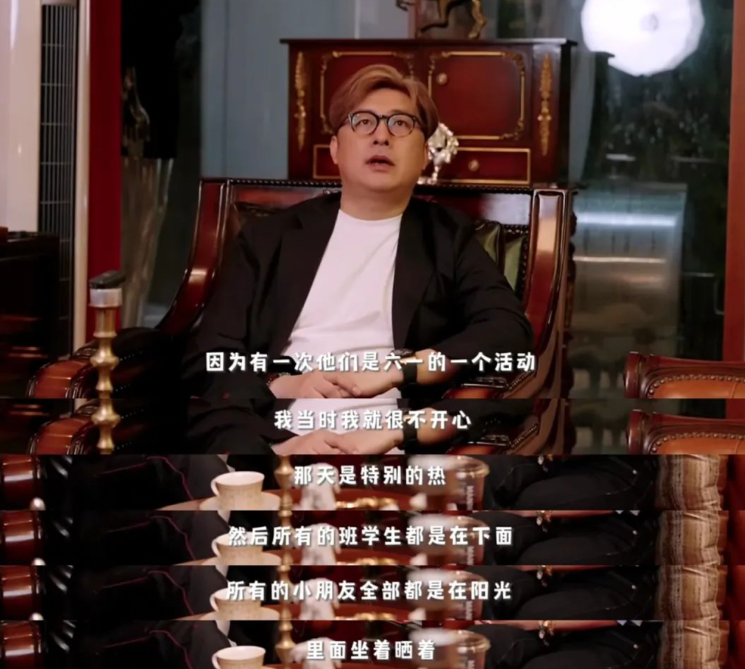 談及原因,王嶽倫稱是因為那天天氣很熱,學校讓所有小朋友坐在陽光下,老師和領導卻在陰影裏: