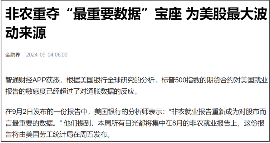這也説明,8月初那波全球股市大跌,主要原因就是8月2日公佈的非農數據很糟糕,特別是失業率大幅上升,才引發市場對美國經濟衰退的擔憂,進而導致全球股市大跌。