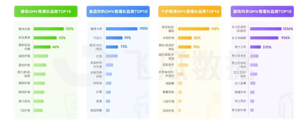 另一方面,秋冬季節即將到來,人們對肌底衣/肌膚衣、唇部護理、嬰童被套等產品的需求日漸提升,推動了服飾內衣、母嬰寵物、美妝等行業的銷售增長。此外,大閘蟹提貨券、月餅禮盒、茶葉等適合中秋送禮的產品也在本月迎來熱賣。隨着中秋臨近,相關品類的熱度還將持續,值得商家達人跟進推廣。
